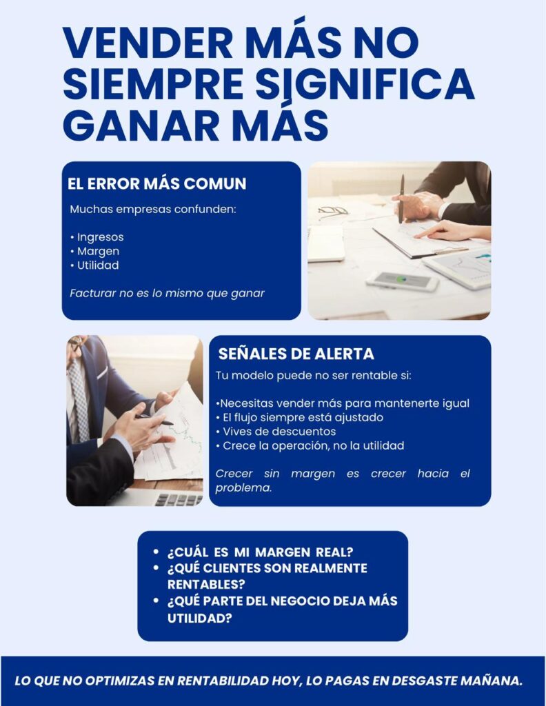 Muchos empresarios miden el crecimiento por el aumento en ventas. Más clientes, más facturación, más movimiento. Pero hay una verdad incómoda que pocas veces se analiza con frialdad: puedes estar vendiendo más… y ganando menos.